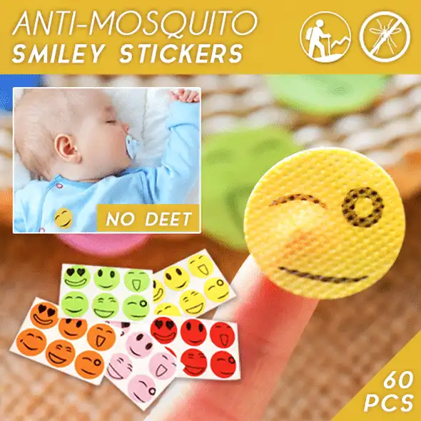 PAKET ENTHÄLT:1 x Anti-Mücken-Smiley-Aufkleber (60 Stück)
