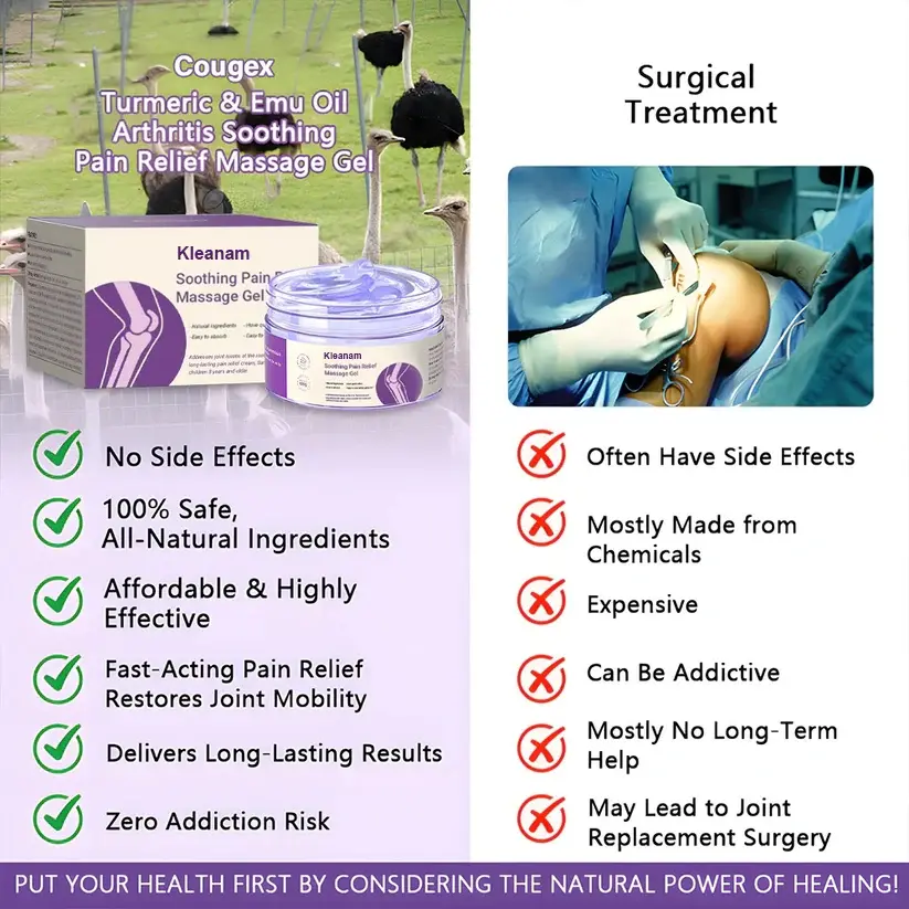 Kehren Sie zu schmerzfreier Bewegung zurück mit Kleanam™ Kurkuma & Emu Oil Arthritis Schmerzlinderungs-Massagegel!