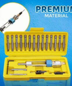 - PAKET ENTHÄLT: 1 x Halbzeit-Bohrschrauber, 8 x Kreuzschlitz-Bits (je 2: PH0, PH1, PH2, PH3), 8 x Flachkopf-Bits (je 2: 1/8 Zoll 3,2 mm, 5/32 Zoll 4 mm, 3/16 Zoll 4,8 mm, 1/4 Zoll 6,3 mm), 2 x Senker Bits (3/32″ 2,4 mm, 1/8″ 3,2 mm), 1 x Inbusschlüssel, 1 x Koffer (7,6 x 3 Zoll / 19,4 x 7,4 cm)