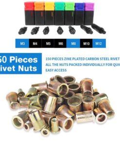 - Nietmuttern mit amerikanischem Standardgewinde, 90 Stück: M3: 20 Stück, M4: 20 Stück, M5: 20 Stück, M6: 20 Stück, M8: 10 Stück;