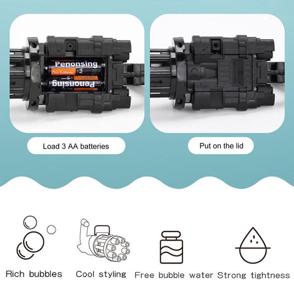 Elektrisches Gatling-Bubble-Maschinengewehrspielzeug mit den folgenden Produktmerkmalen: