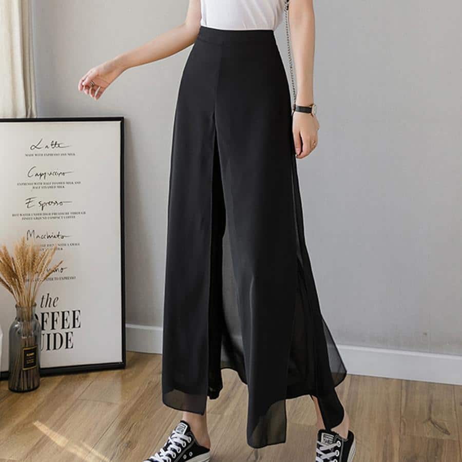 Hose mit weitem Bein aus Eisseiden-Chiffon